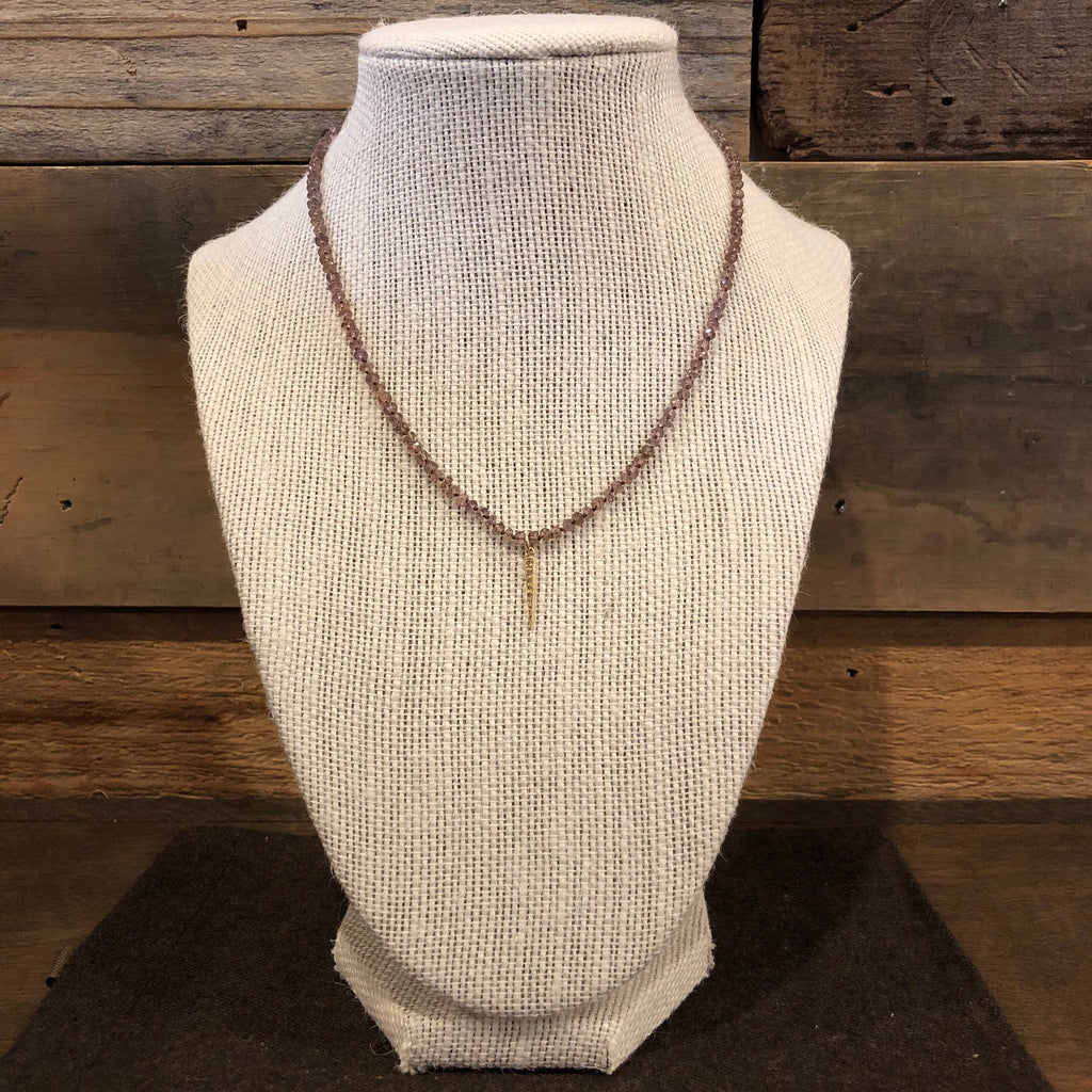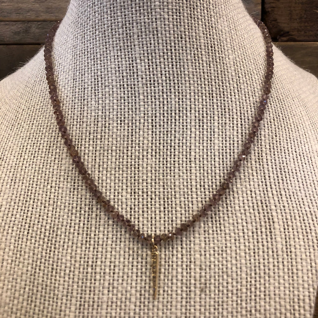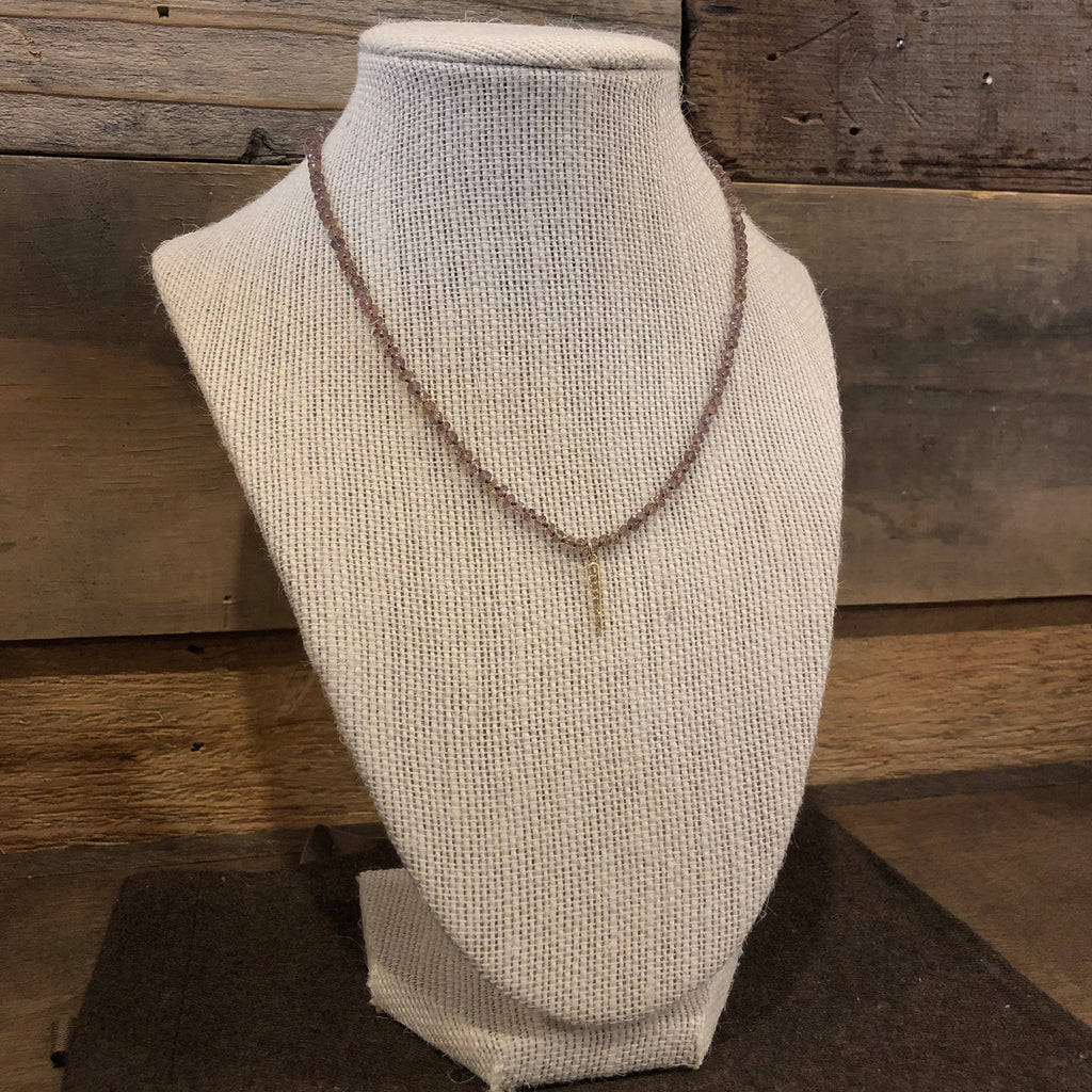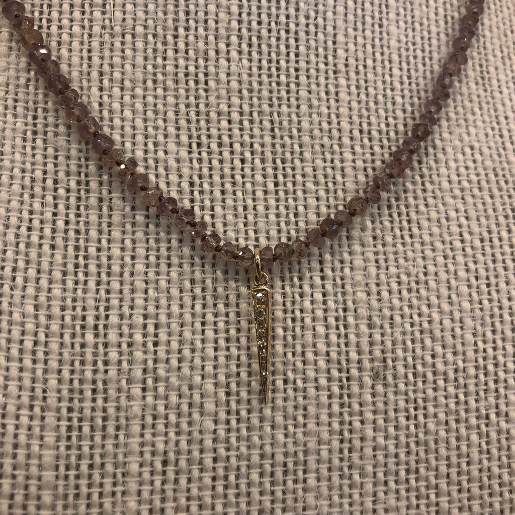 Knotted Andalusite with 14K Yellow Gold pave Diamond Stick Pendant 16"